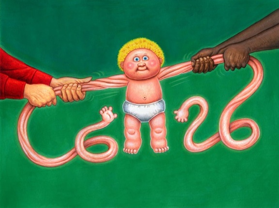 Original final acrylic painting of Topps 2012 GARBAGE PAIL KIDS Brand New Series 1 #51 Tug of WARREN / Stretch SAUL.