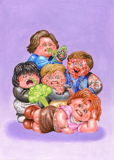 Highly detailed acrylic painting color rough of 2018 Topps GARBAGE PAIL KIDS: We Hate The ‘80s (Movies Subset) #4 Breakfast BENDER / Club CLAIRE by award winning artist LAYRON DeJARNETTE (Official Garbage Pail Kids artist for Topps, Artist for Disney, Warner Bros., Marvel, DC Comics, Mattel, Monster High, Upper Deck & Cryptozoic Entertainment.)