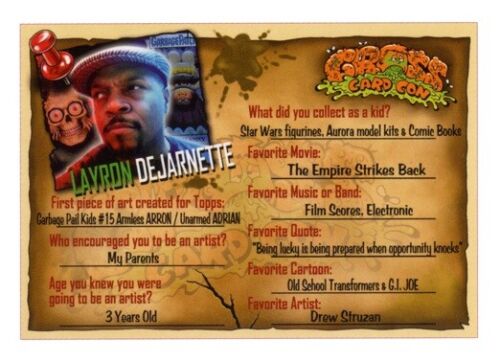 Exclusive limited edition 2020 Las Vegas Gross Card Con "RAY Deen / SHON Gunn" artist promo trading card by Layron DeJarnette (Official Garbage Pail Kids artist).