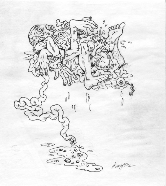 3. Guts ink drawing 5.5 X 6 on copy paper.