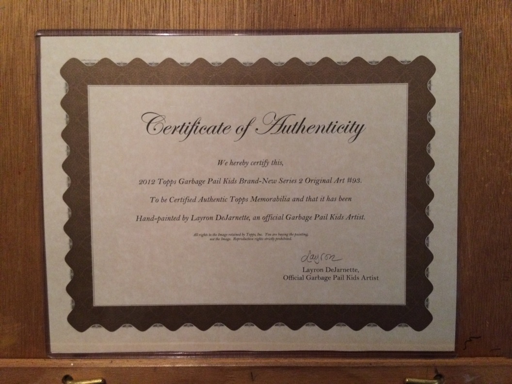Final illustration size is approximately 5.75x7.75 on 8.5x11 thick bristol board. MINT CONDITION! Signed, dated with series description by the artist and comes with a Certificate of Authenticity! GPK trading card is not included.