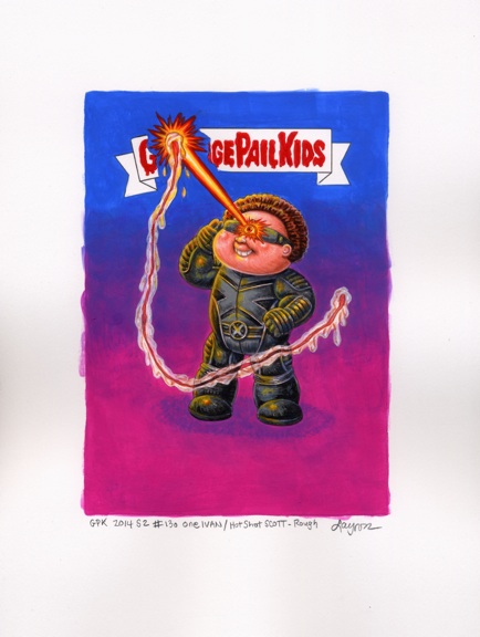 Original detailed color rough of Topps GARBAGE PAIL KIDS 2014 Series 2 #130 One IVAN / Hot Shot SCOTT / Slim CHANCE by award winning artist LAYRON DeJARNETTE (Official Garbage Pail Kids artist for Topps, Artist for Disney, Warner Bros., Marvel, DC Comics, Mattel, Monster High, Upper Deck & Cryptozoic Entertainment.)