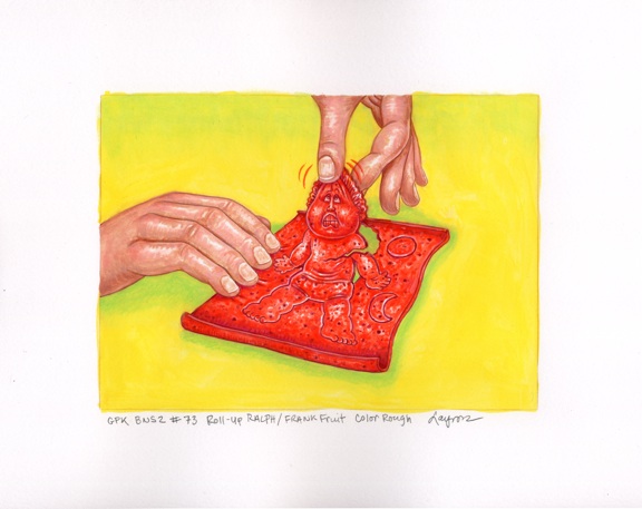 Original detailed color rough of Topps 2013 GARBAGE PAIL KIDS Brand New Series 2 #73 Roll-Up RALPH / FRANK Fruit.
