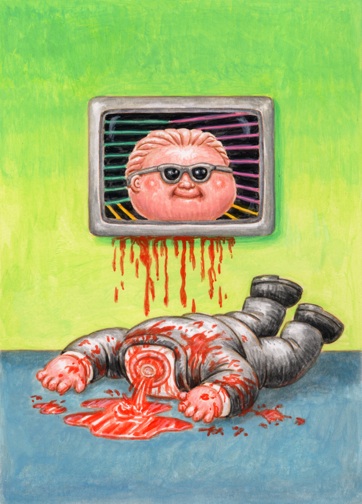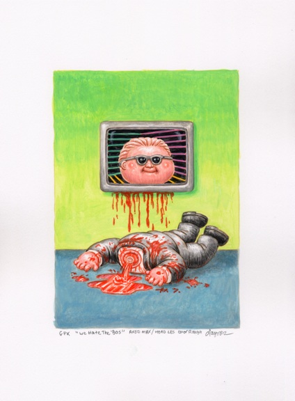 Original detailed acrylic painting color rough of 2018 Topps GARBAGE PAIL KIDS: We Hate The ‘80s (TV & Ad Subset) #2 Axed MAX / Head LES by award winning artist LAYRON DeJARNETTE (Official Garbage Pail Kids artist for Topps, Artist for Disney, Warner Bros., Marvel, DC Comics, Mattel, Monster High, Upper Deck & Cryptozoic Entertainment.)