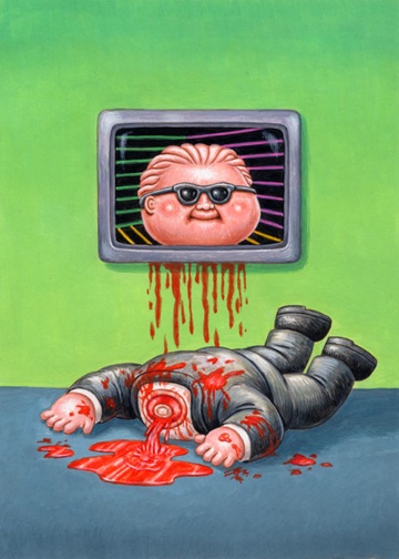 Original final acrylic painting of 2018 Topps GARBAGE PAIL KIDS: We Hate The ‘80s (TV & Ad Subset) #2 Axed MAX / Head LES by award winning artist LAYRON DeJARNETTE (Official Garbage Pail Kids artist for Topps, Artist for Disney, Warner Bros., Marvel, DC Comics, Mattel, Monster High, Upper Deck & Cryptozoic Entertainment.)