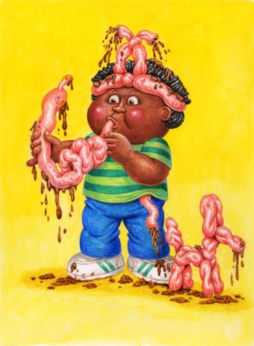 Highly detailed color rough acrylic painting of Topps 2012 GARBAGE PAIL KIDS Brand New Series 1 #2 NATE Inflate / Balloony BART.