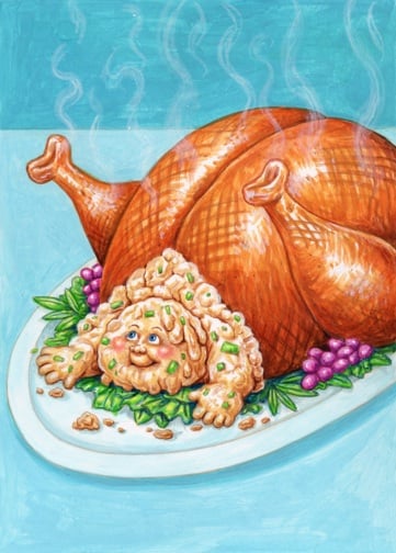 Highly detailed original acrylic painting color rough of 2013 Topps GARBAGE PAIL KIDS Brand New Series 3 #167 Stuffed STEVE / Packed ZACK by award winning artist LAYRON DeJARNETTE (Official Garbage Pail Kids artist for Topps, Artist for Disney, Warner Bros., Marvel, DC Comics, Mattel, Monster High, Upper Deck & Cryptozoic Entertainment.)