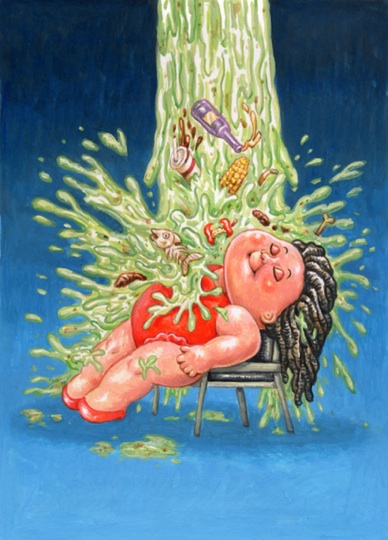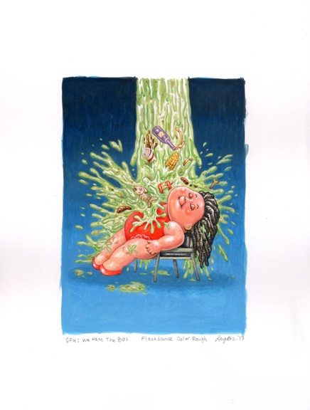 Highly detailed acrylic painting color rough of 2018 Topps GARBAGE PAIL KIDS: We Hate The ‘80s (Movies Subset) #7 Flashy DENICE / Barfed-On BEALS by award winning artist LAYRON DeJARNETTE (Official Garbage Pail Kids artist for Topps, Artist for Disney, Warner Bros., Marvel, DC Comics, Mattel, Monster High, Upper Deck & Cryptozoic Entertainment.)