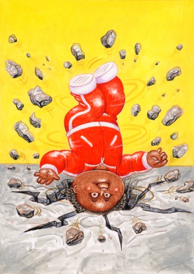 Highly detailed acrylic painting color rough of 2018 Topps GARBAGE PAIL KIDS: We Hate The ‘80s (80s Fashions & Fads Subset) #7 Break LANCE / Headspin FINN by award winning artist LAYRON DeJARNETTE (Official Garbage Pail Kids artist for Topps, Artist for Disney, Warner Bros., Marvel, DC Comics, Mattel, Monster High, Upper Deck & Cryptozoic Entertainment.)