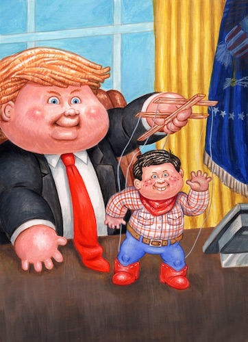 Original final acrylic painting for 2020 Topps GARBAGE PAIL KIDS DisgRACE To The White House by award winning artist LAYRON DeJARNETTE (Official Garbage Pail Kids artist for Topps, Artist for Disney, Warner Bros., Marvel, DC Comics, Mattel, Monster High, Upper Deck & Cryptozoic Entertainment.)